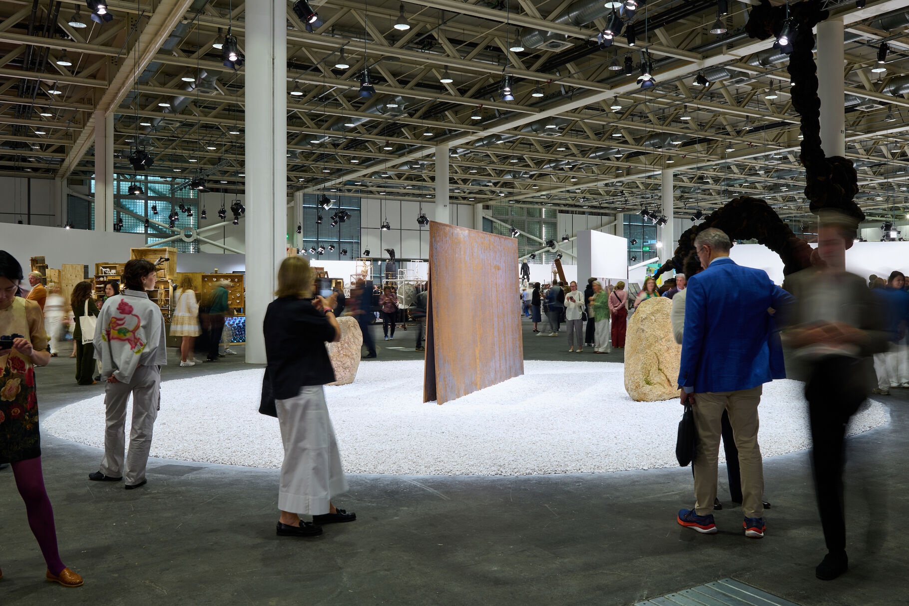 In Unlimited - the sector for out-sized gestures - collectors chased experiences as much as objects. Félix González-Torres’s 1991 go-go-dance performance carried a $16 million tag; Danh Võ’s timber-and-steel flag In God We Trust went to a U.S. institution, and Martin Kippenberger’s faux-U-Bahn entrance was priced at $3 million. More modest, but sold, were Arlene Shechet’s candy-coloured Midnight ($1.2 million) and Yu Nishimura’s triptych (€375,000). Off-site, Basel Social Club turned a disused bank into a carnival of micro-transactions - from one-franc Koons knock-offs to a functioning casino.