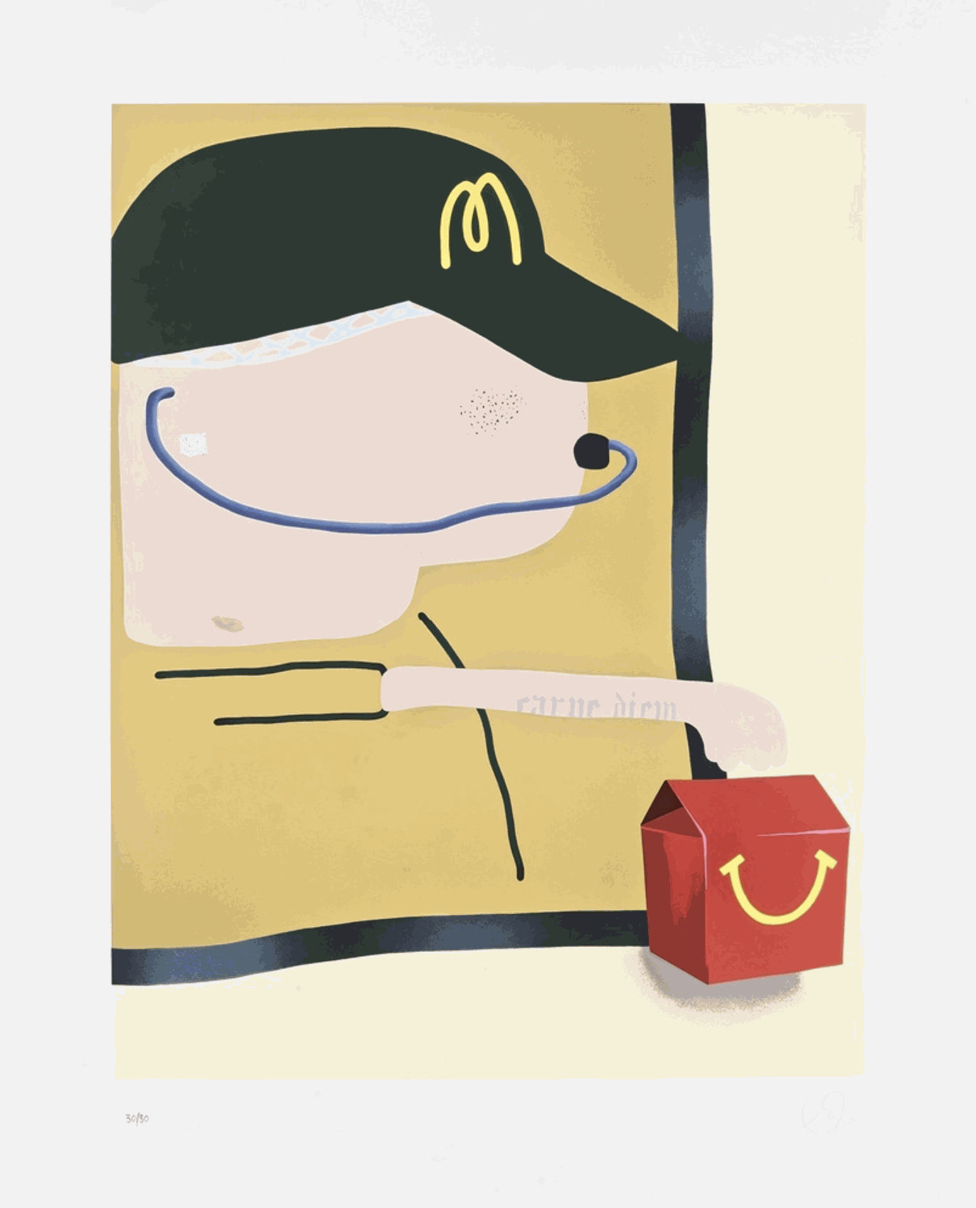 Oli Epp’s meteoric rise to fame over the last few years is no surprise considering his ability to connect with everybody within the art world. His choice of gallery representation tells us at Mustard that he’s just getting going, coupled with a string of significant auction results it seems as though he is destined for big things. Carpe Diem is a classic edition from Oli produced back in 2018 in a small edition of 30 and, in our opinion, is a great investment… It also looks pretty good too.
